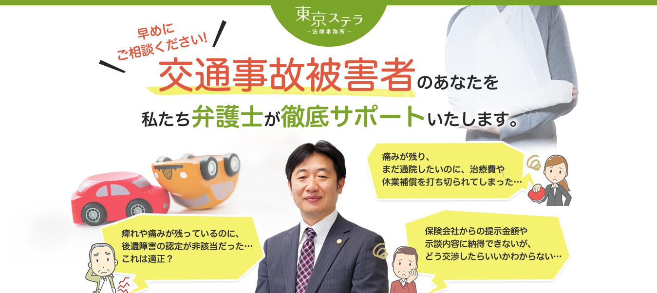 交通事故においては保険会社との示談交渉、後遺障害の認定、過失割合、損害賠償請求など様々な問題が発生し、